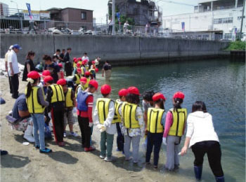 兵庫運河を豊かな里海に再生するために地元住民の方々・NPO団体・行政の方々と協働し、運河の水質や底質改善、生物の多様性を高める活動を行っています。